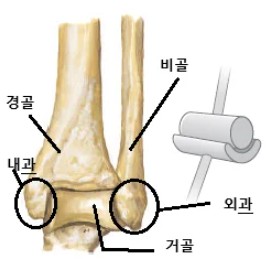 • 넘어지며 비틀리면 외과(비골 쪽) 주변 골절이 흔하고, 강한 외회전/전위가 있으면 관절 간격 벌어짐(모티스 불안정)이 생길 수 있습니다.