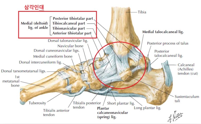발목의 뼈 구조물과 외측/내측 인대들 : 특히 ATFL, CFL, 삼각인대. 발목은 다양한 인대가 매우 많은 관절입니다. Netter’s Orthopaedic Clinical Examination. An Evidence-Based Approach-Elsevier Inc. (2016)
