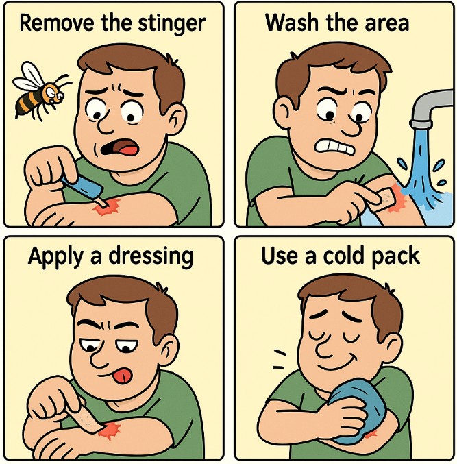 - 벌침이 남아 있다면 즉시 제거합니다.