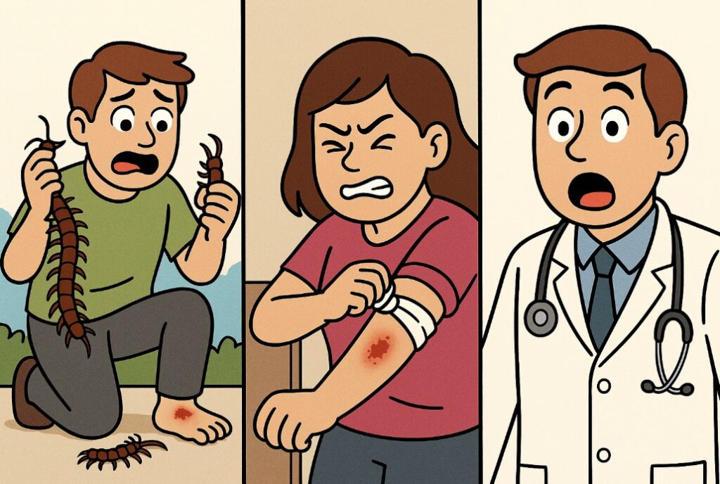 국내에서 흔한 지네 물림은 국소 통증·부종 중심이며 전신 중증 반응은 드뭅니다.