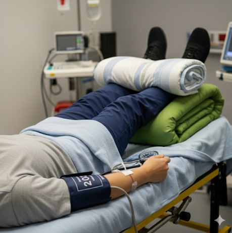 - 어지럽다면 즉시 눕고 다리를 10–20cm 정도 올립니다.