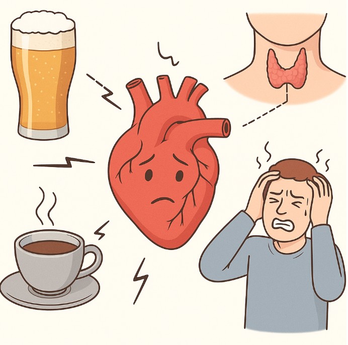 → 불안, 스트레스, 공황, 카페인, 갑상선 항진증 등
