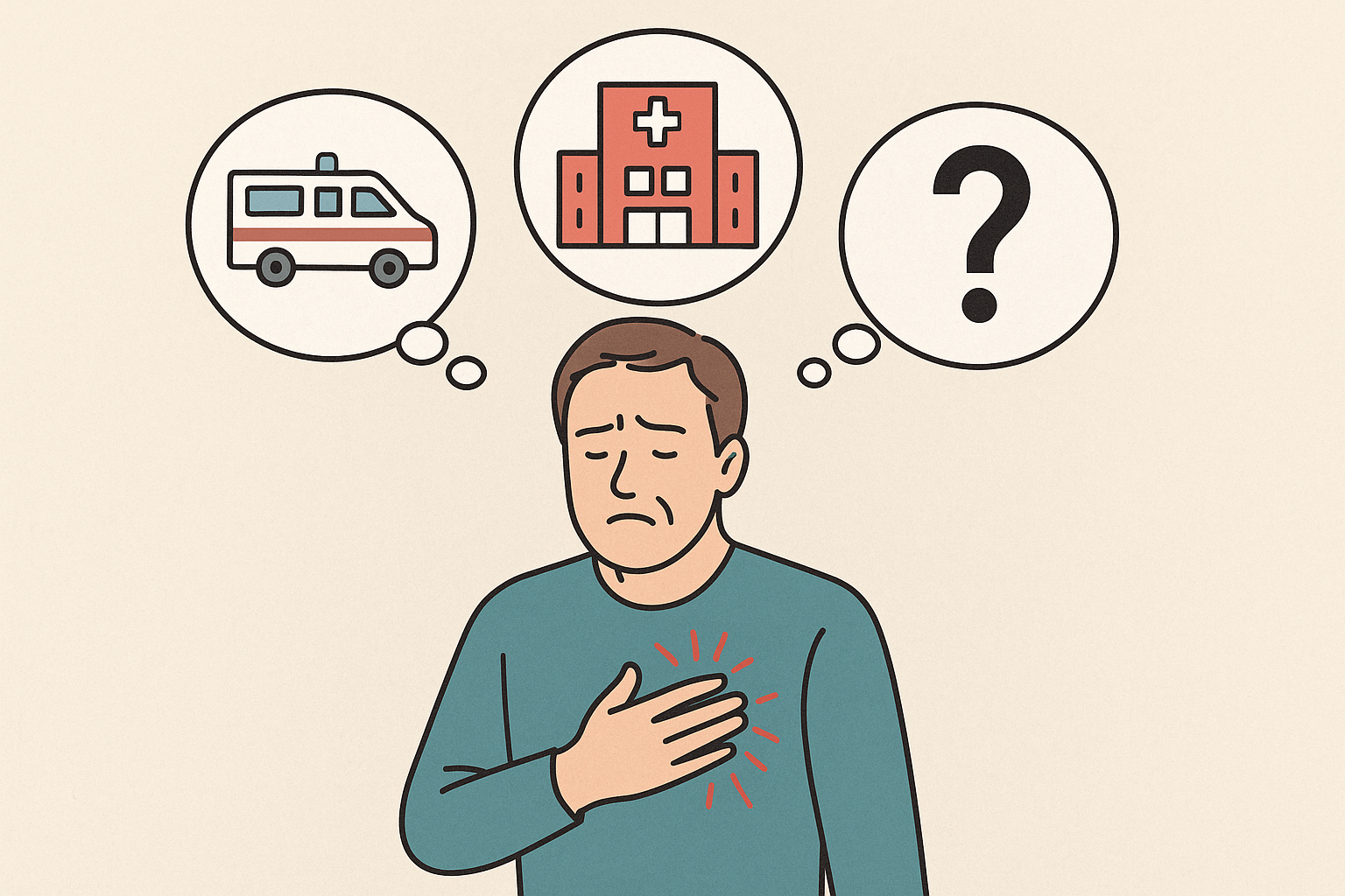 → 생명을 위협하는 심장질환일 수 있으므로 즉시 응급실 방문이 필요합니다.