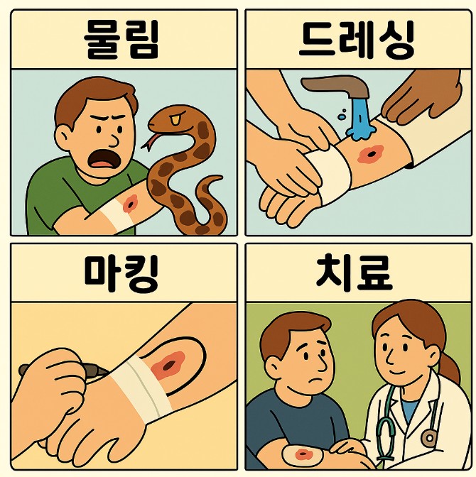 - ❌ 물린 부위를 칼로 째거나 피를 짜내기